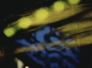 The opening superimposition of Words of Mercury ... layers a dance of jittering lights over a crepuscular landscape, as if the pencil-thin white and colored lines of light were swarming midair before a barely discernible background of trees, as night falls.WHERE/WHEN: Words of Mercury screens on a SFMOMA program starting at 7:00 tonight only.
